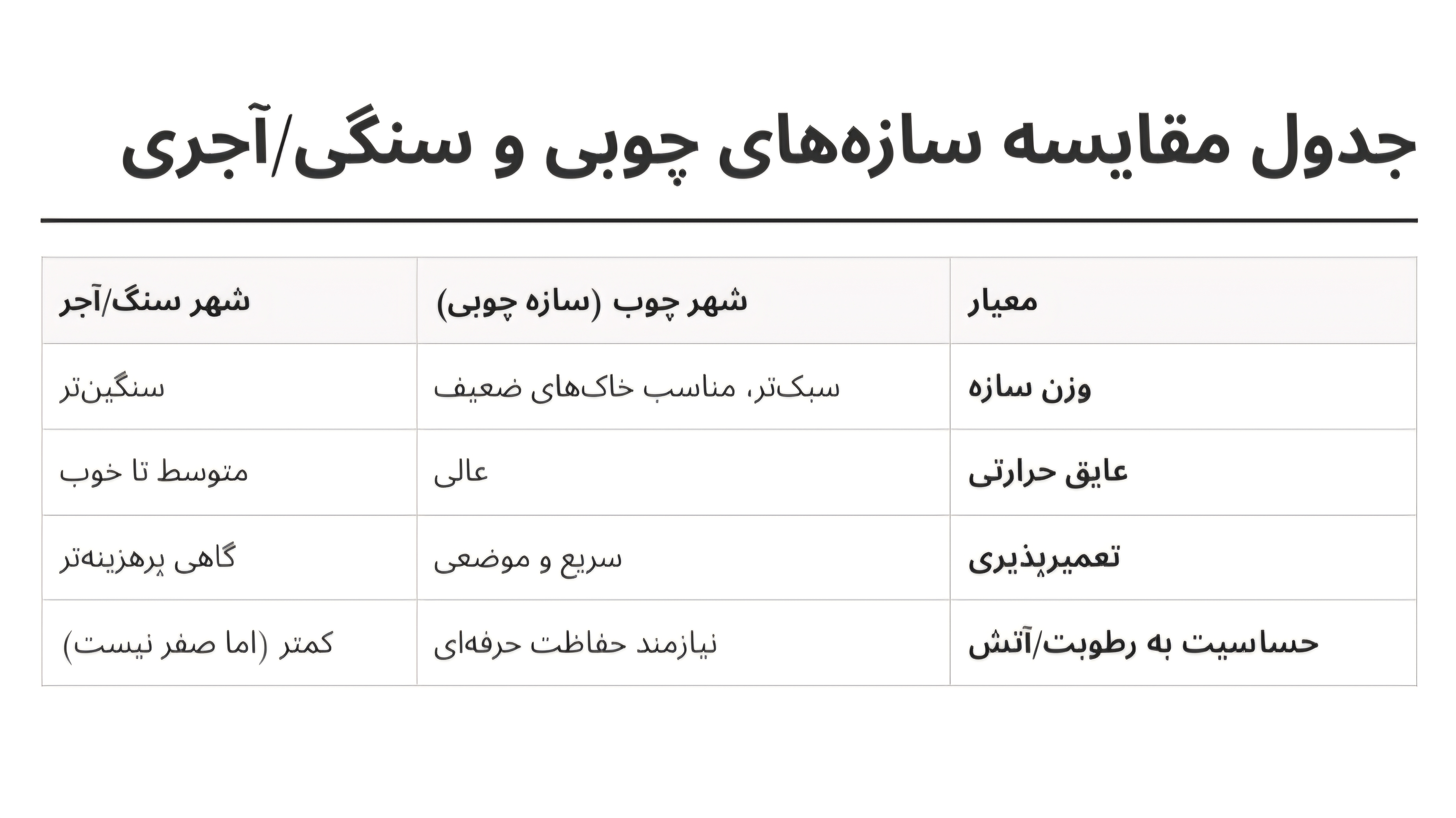 مقایسه شهر چوبی با شهرهای سنگی و آجری؛ کدام پایدارتر است؟